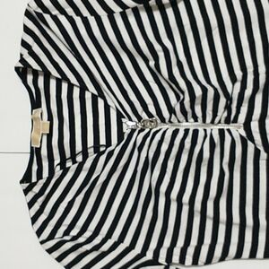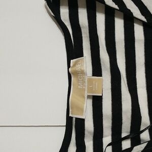 Super cute long sleeve half V-neck zip top, Michael Kors, size L for women, (black and white), 95% cotton and 5% spandex, used in excellent condition, no damage. Look at the pictures for measurements please. Any questions let me know.