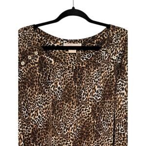 Michael Kors 16W Plus Leopard Animal Print Blouse Long Sleeve Button Detail Top