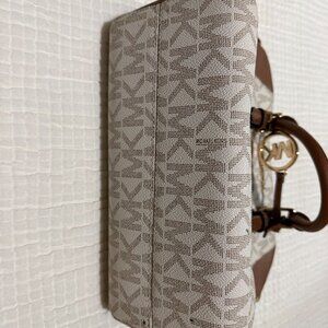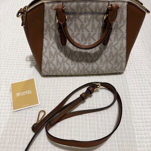 Effortlessly chic and versatile Michael Kors handbag in the classic brown/off-white signature print—perfect for year-round style!