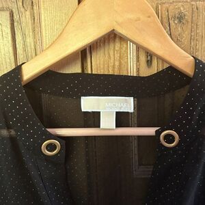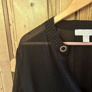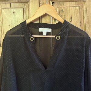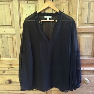 Michael Kors 2X Sheer Blouse Shirt Black Gold V-Neck Bishop Long Sleeve Button