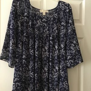 This is a beautiful navy, light blue, and white Michael Kors blouse.