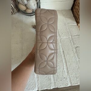 · interior back zip pocket, front slip pocket, and center zip compartment