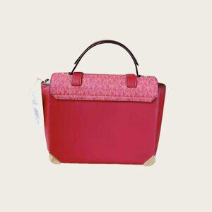 Michael Kors 35F1GNCS6V Manhattan Medium Leather and Logo Satchel in Berry Multi
