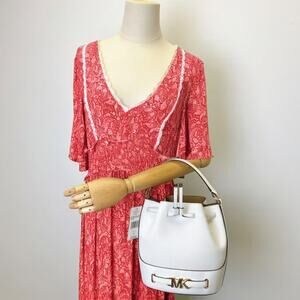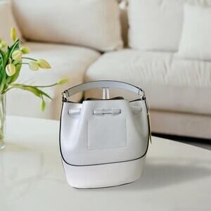 Michael Kors 35S3G6RM8T Reed Medium Pebbled Leather Bucket Bag IN OPTIC WHITE
