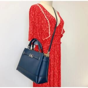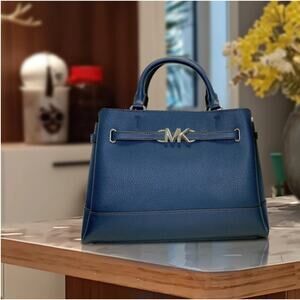 Michael Kors 35S3S6RS3T Reed Large Leather Satchel Crossbody Bag IN NAVY