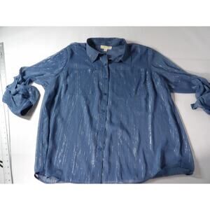 Michael Kors 3X Sheer Sparkly Top Button Up Layers Slate Blue Roll Tab