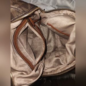 The bag has 1 small nick on the piping (pictured) and scratches on the hardware.