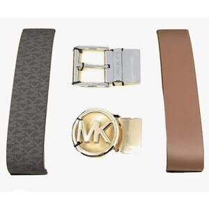 Michael Kors 4 in 1 Faux Leather Belt Set Brown Gold Silver