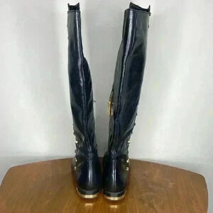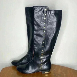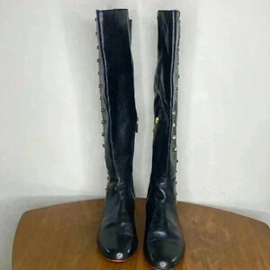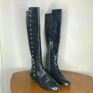 Michael Kors 5.5 STUDDED Leather Boots AILEE $250 Knee High Flat Black Gold. Good used condition, see photos for details.