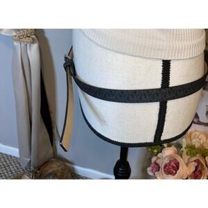 Michael Kors 556207 L MK Logo Monogram Adjustable Buckle Gray Black Thin Belt