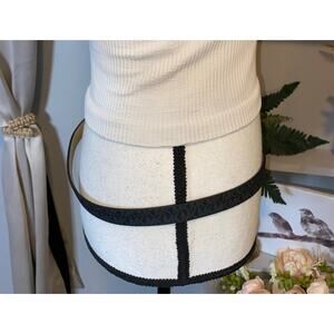 Item Description: Michael Kors 556207 L MK Logo Monogram Adjustable Buckle Gray Black Thin Belt