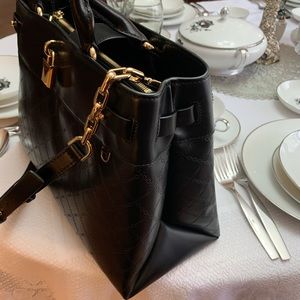 Michael Kors Women’s Purse Black Chain Embossed Gramercy Large Satchel. Missing charm