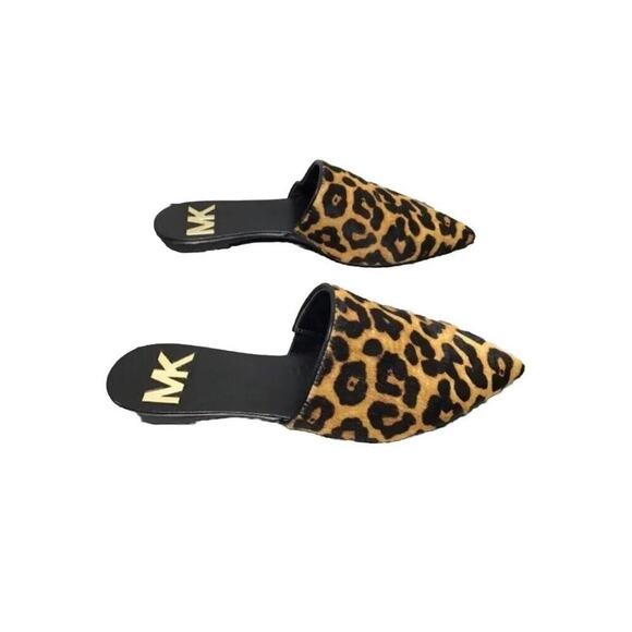 Michael Kors (6) Leopard Calf Hair Flats Renee Flex Slides Pointed Mules Size 6