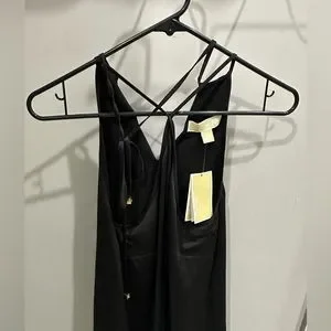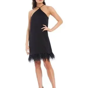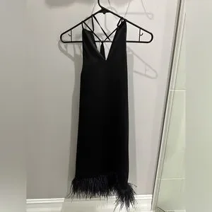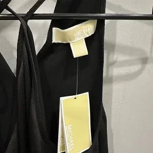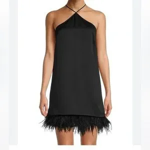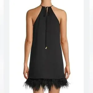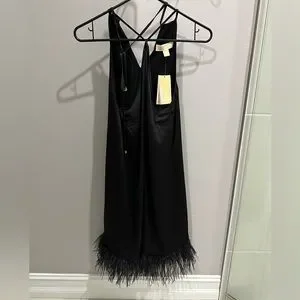 Michael Kors black feather trim halter dress. New with tags. Size XS