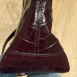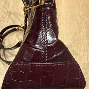 This Michael Kors satchel features a striking black crocodile-embossed texture, offering a blend of sophistication and style. Its structured silhouette and luxurious finish make it perfect for professional occasions. The gold-tone chain detail adds a touch of elegance to this timeless accessory. W 12.6 x H 9.45 x D 5.12 inches Handle Drop: 4.33 inches Drop: 22.83 inches W 32 x H 24 x D 13 cm Handle Drop: 11 cm Drop: 58 cm