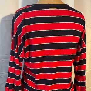 Michael Kors Nauticul cotton top in red white and blue with bell sleeves and rope design detail