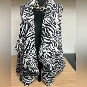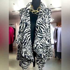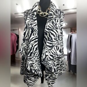 used vest, black, white, synthetic rabbit fur, size S 100% polyester from Korea.🫶