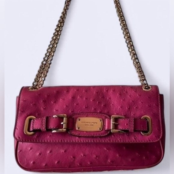 Michael Kors small flap pink ostrich leather