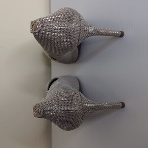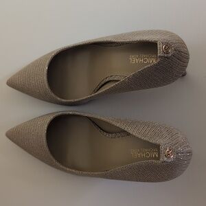 Michael Kors 7.5 Alina Flex Pump Pale Gold Glitter Chain Mesh Heels, NEW