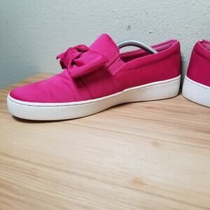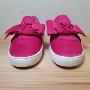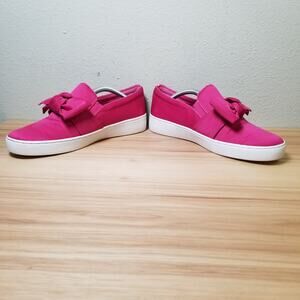 Michael Kors 7.5 Willa Bow Front Slip On Sneaker Hot Pink Satin Preppy Barbie