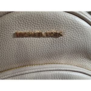 Elevate your style with this beautiful Michael Kors Abbey Medium Backpack! Crafted from high-quality pebbled leather in a gorgeous soft pink hue, this backpack is both stylish and practical.