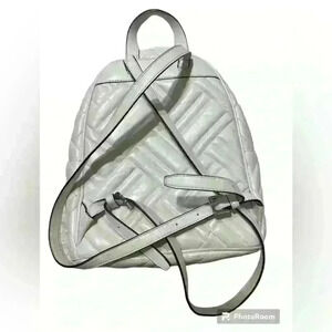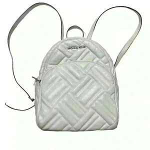Michael Kors Abbey white quilted backpack. Silver hardware. Two zipper pockets.