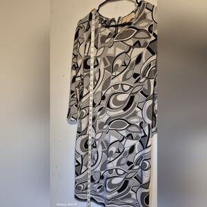 Michael Kors Abstract Black and Gray Long Sleeve Dress