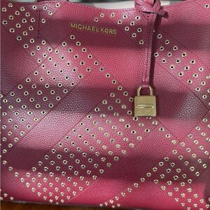 NWOT Elevate your style with the Michael Kors Adele Mylberry Studded Tote Bag. This chic accessory features a stunning mulberry hue adorned with elegant studs, perfect for any occasion. Measures 14” X 10”. Comes with dust bag.