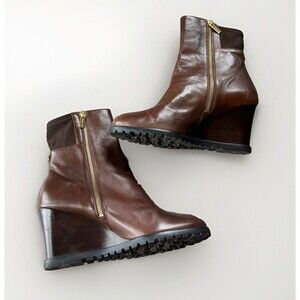 Michael Kors Aileen Wedge Boots Size 10 Brown Leather Double Zip
