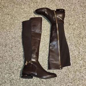 Michael Kors Aileen brown leather elastic back tall riding boots sz 7.5