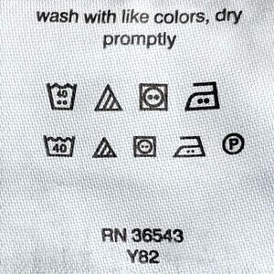 This non iron dress shirt has a mini print in medium blue on white. It has a wide regent style collar. In excellent used condition.