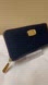 Chic dark navy blue pebbled leather all zipper around closure wallet by Michael Kors. Adorned with a gold logo plaque. Has 12 credit card slots 5 bills compartment one with zipper for coins