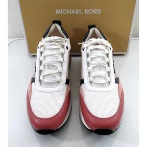 Michael Kors Allie Stride Trainer Lace Up Sneakers MK Logo Cream Multi