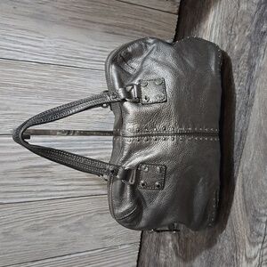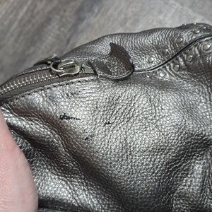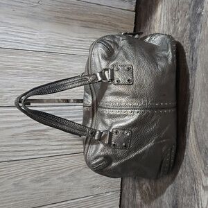 Michael Kors Altor Metallic Gray Leather Studded Top Handle Y2K Satchel