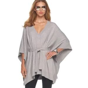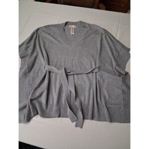Michael Kors Angora Blend Heather Grey V-Neck Belted Sweater Poncho Caftan SM M