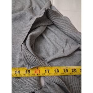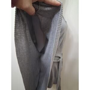 Michael Kors Angora Blend Heather Grey V-Neck Belted Sweater Poncho Caftan in size Small is a stylish and versatile piece of clothing perfect for various occasions such as travel, casual outings, workwear, or business meetings. Made from a luxurious blend of polyester, cotton, and angora, this knit sweater features a flattering V-neckline, 3/4 sleeves with kimono sleeves, and a removable knit tie belt for added style. The solid gray color and bohemian theme make it a chic and trendy addition to any woman's wardrobe.