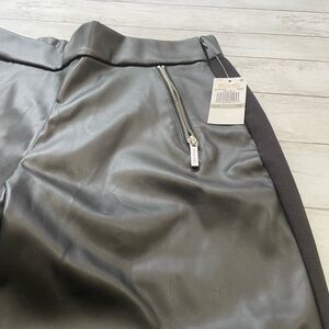 Michael Kors Ankle Faux Leather Leggings Women's 1 X Black Zippered-Pocket