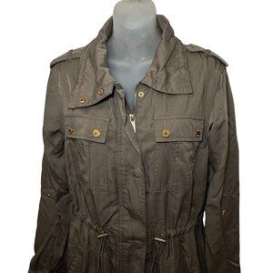 Michael Kors Anorak Coat Jacket Drawstring Waist Khaki Green Gold Hardware XS