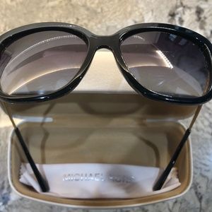 Michael Kors Sunglasses only worn a few times. I need a prescription in my glasses now . Tiny scratch not in vision right lense but in very good condition with clean cloth and case