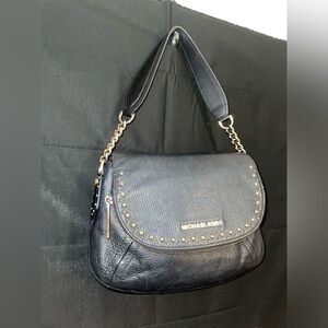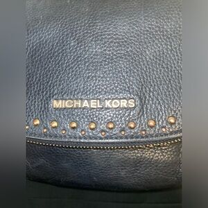 Used Michael Kors Aria Studded Medium Convertible Black Leather Purse, With Gold Hardware, Bottom Corners Have Wear Which There Is A Picture Of, In Fair Condition From A Smoke Free Home
