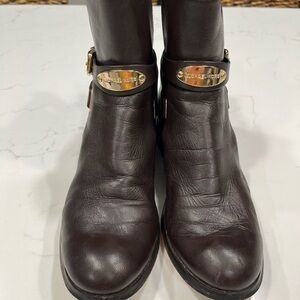 Michael Kors Arley Moto Brown Leather Ankle Boots 7