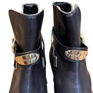 Michael Kors Arley Moto Buckled Ankle Boots Size 6 Black Leather Buckle