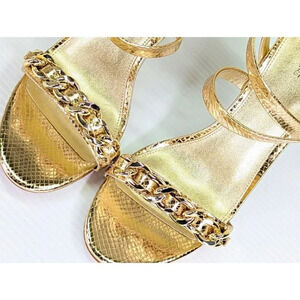 Michael Kors Women's Asha Gold Embellished Snake Embossed Leather Sandal Size 9.5 M