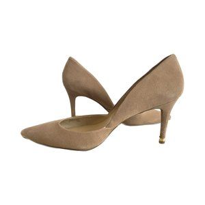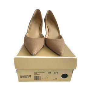 Michael Kors nude/taupe suede heels in box - these are a perfect shade of taupe/nude color heels that go with anything!