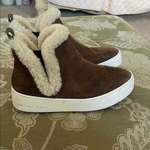 Michael Kors Ashlyn Suede Shearling Lined Ankle Boots Women’s 10 Tan Winter
