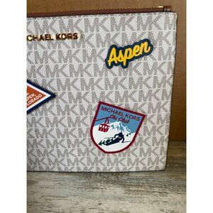 Michael Kors Aspen XL Wristlet MK Vanilla Ski Patch Zip Clutch NWT