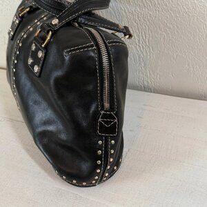 Michael Kors Astor Black Leather Satchel / Top‑Handle Bag Silver Studs