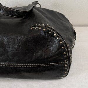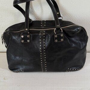 Michael Kors Astor Black Leather Tote Silver Studded Zip Shoulder Bag