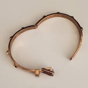 Michael Kors Astor Hinged Buckle Bangle is rose gold and has a locking buckle. 7 inches. Shows some wear, please review all photos. Comment with any questions.