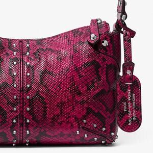Condition: New With Tags (NWT) ✨ Michael Kors Astor Large Studded Snake Embossed Leather Shoulder Bag